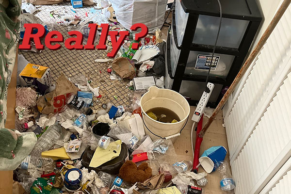Or maybe it’s a loved one hoarding food, trash, paper or clothes. We don’t judge. We just bring all the supplies, dumpster, cleaning equipment etc. into your home. We get the hoarding cleanup done and you get your world back. A fair deal for all concerned!