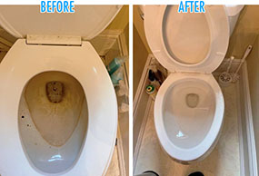 Toilets are another area that can fall onto the third rail... the forgotten zone of cleaning ownership, quite easily too. The worse it gets, the less likely it will find a champion. Someone to take ownership and swab the deck. Anyone? Nope? OK, make the call. And we get another great before/after shot for the scrapbook.